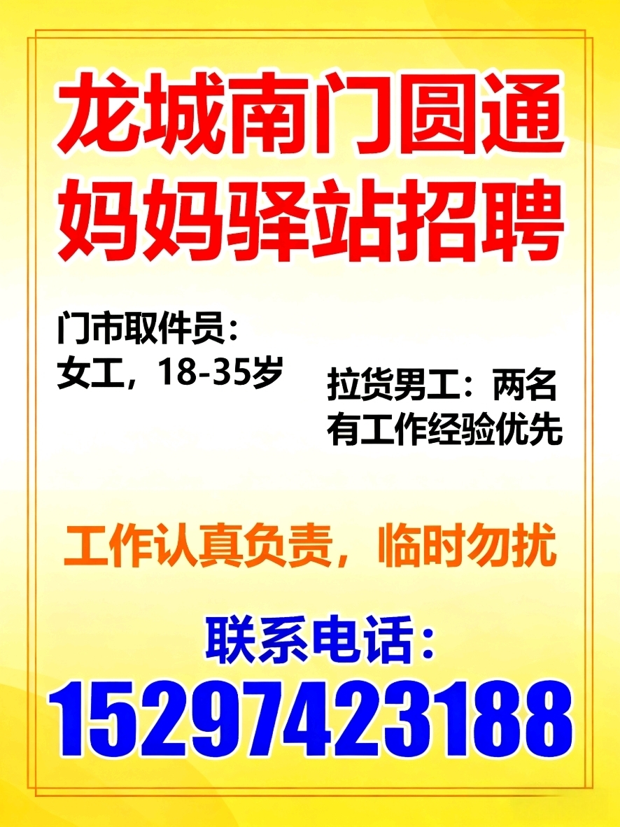 招聘门市取件员要求女工年龄18到35岁之间拉货男工两名有工作经验优先工作认...