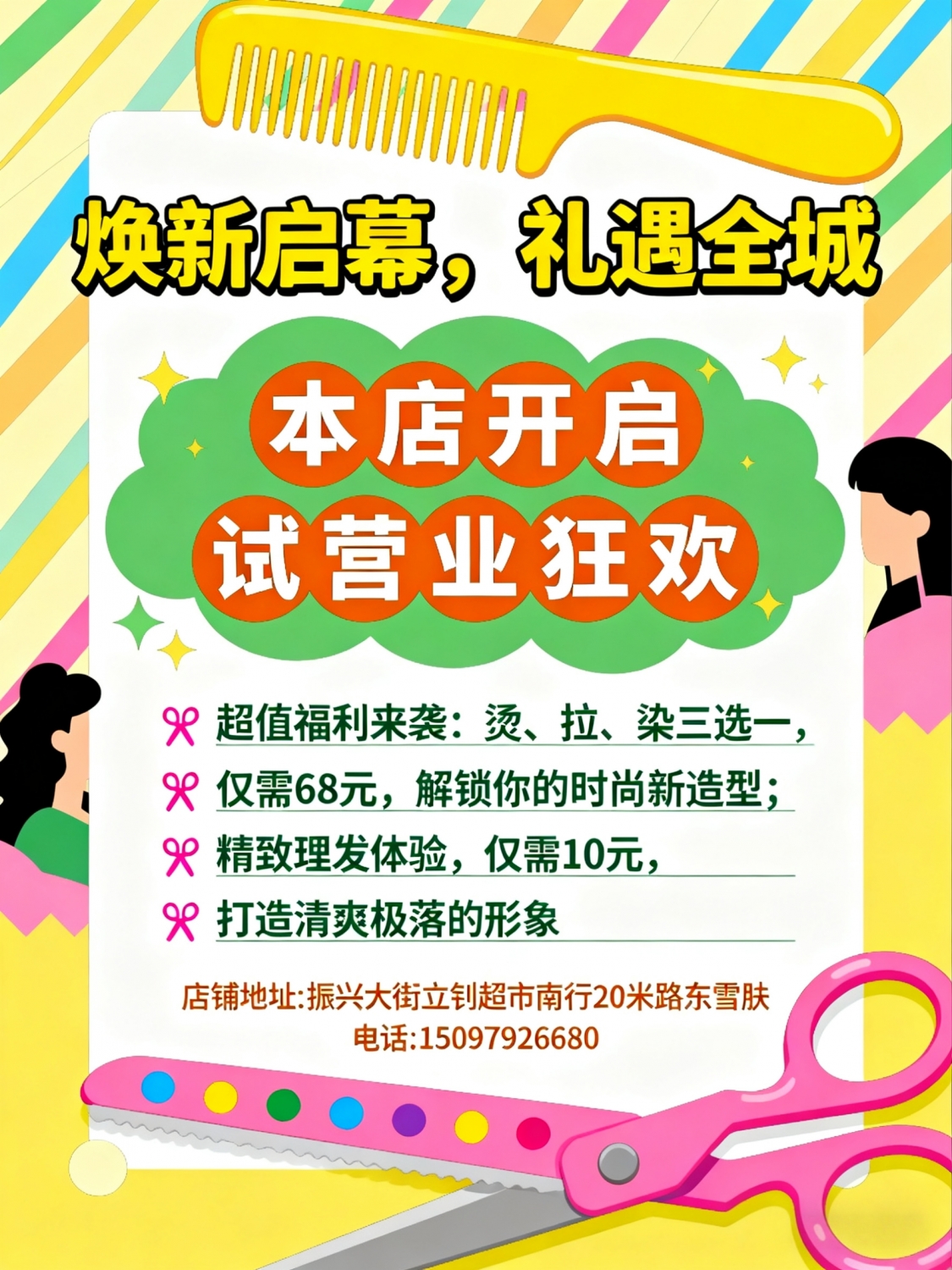 焕新启幕,礼遇全城!本店开启试营业狂欢,超值福利来袭:✨烫、拉、染三选...