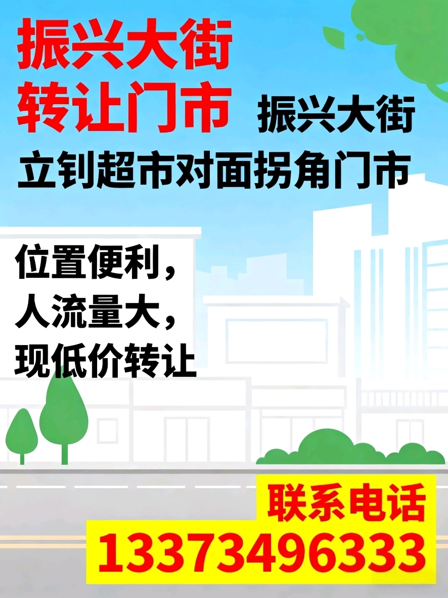 转让振兴大街立钊超市对面拐角门市 位置便利,人流量大现低价转让 联系电...