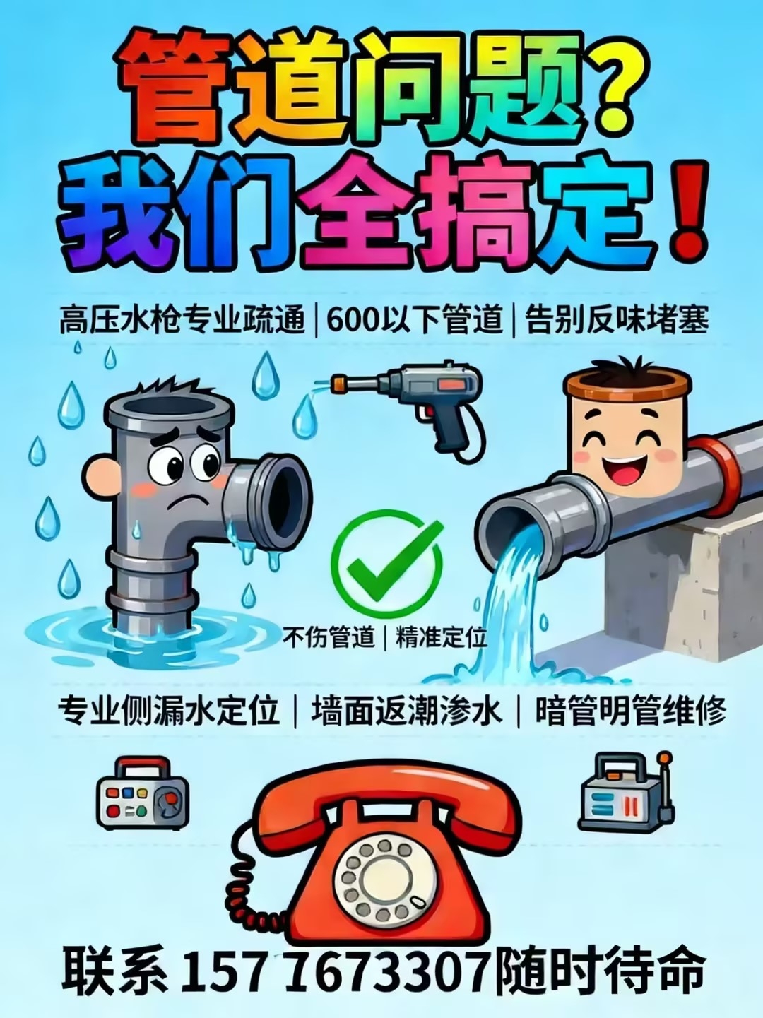 【高压水枪专业疏通】600以下管道全搞定让你的管道焕然一新告别反味,堵塞烦恼不伤管道 让堵塞管道恢复如新 【专业侧漏水,精准定位】✅墙面返潮,地面渗水全搞定✅各类暗管,明管漏水问题*****3307随时待命