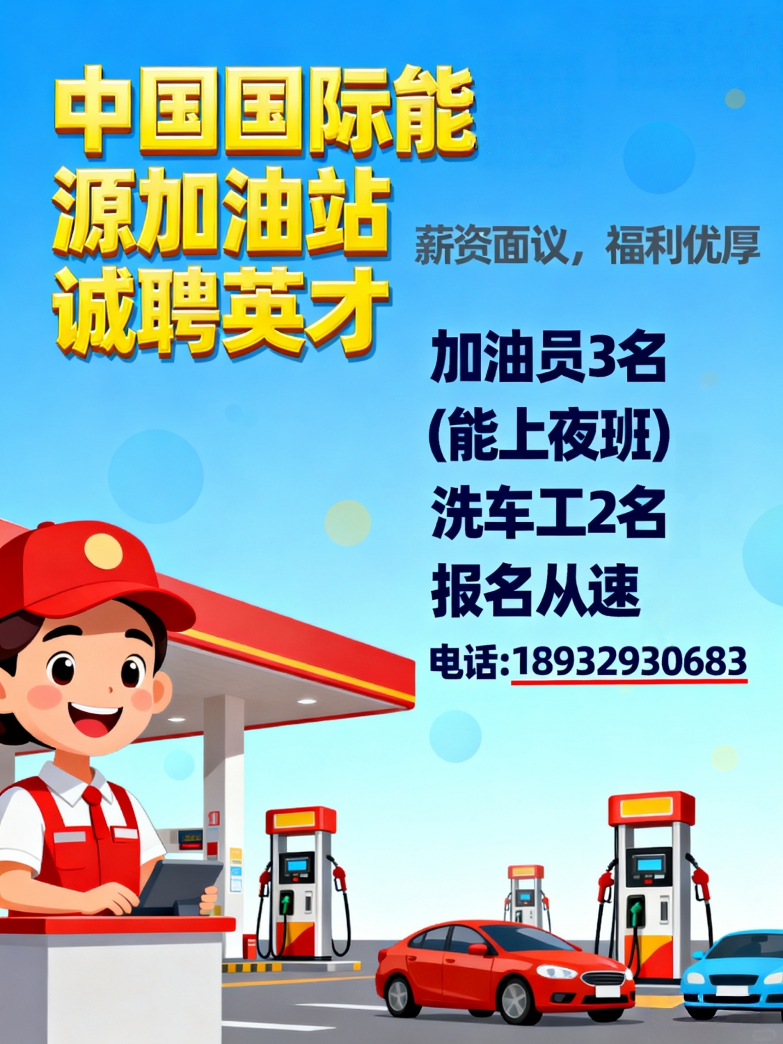 中国国际能源加油站招聘加油员3名(能上夜班)洗车工2名报名从速,招聘电话:...