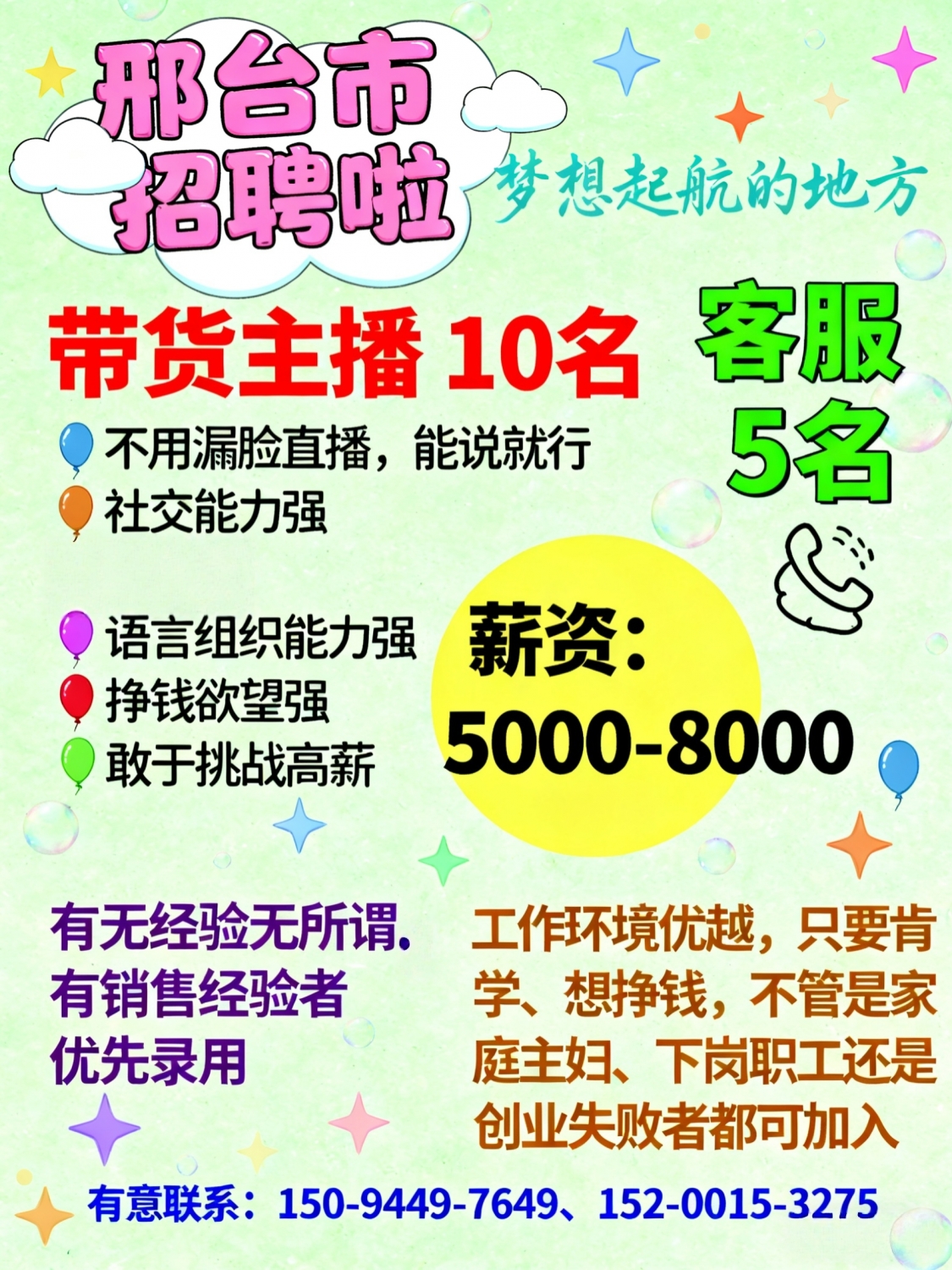 邢台市招聘招聘带货主播10名主播要求(说明):不用漏脸直播,能说就行要求:...