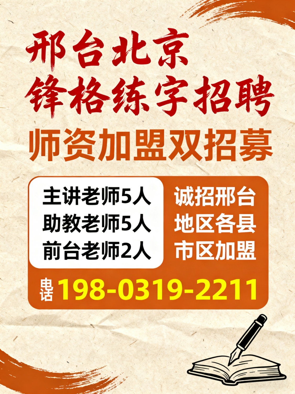 邢台北京锋格练字招聘主讲老师5人助教老师5人前台老师2人诚招邢台地区各县...