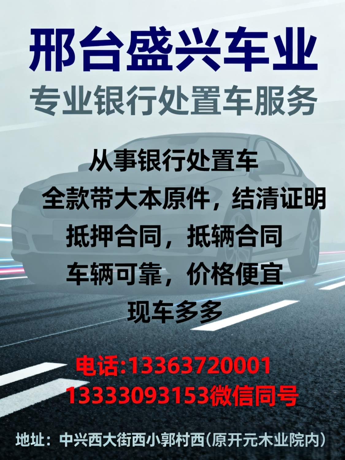出售邢台盛兴车业,从事银行处置车全款带大本原件,结清证明,抵押合同]车...