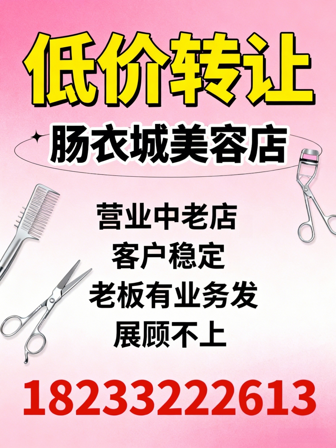 低价转让肠衣城美容店营业中老店,客户稳定,老板有业务发展顾不上电话:18...