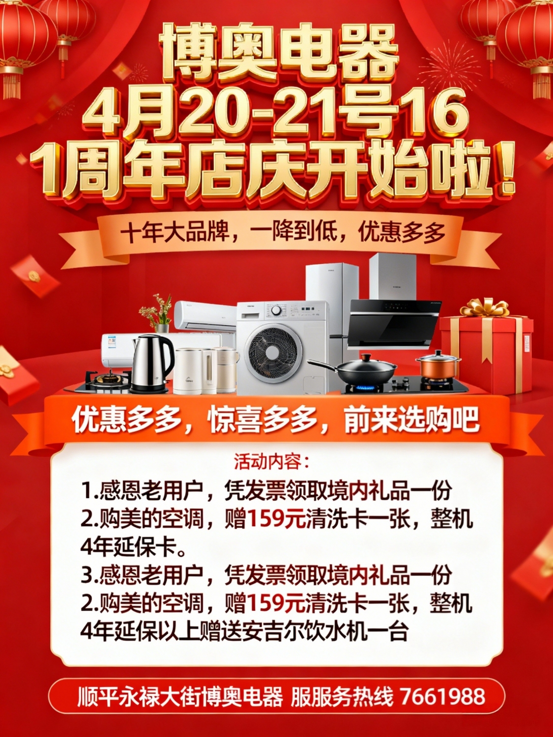 博奥电器4月20-21号16周年 店庆开始啦!十年大品牌,一降到低优惠多多,惊喜...