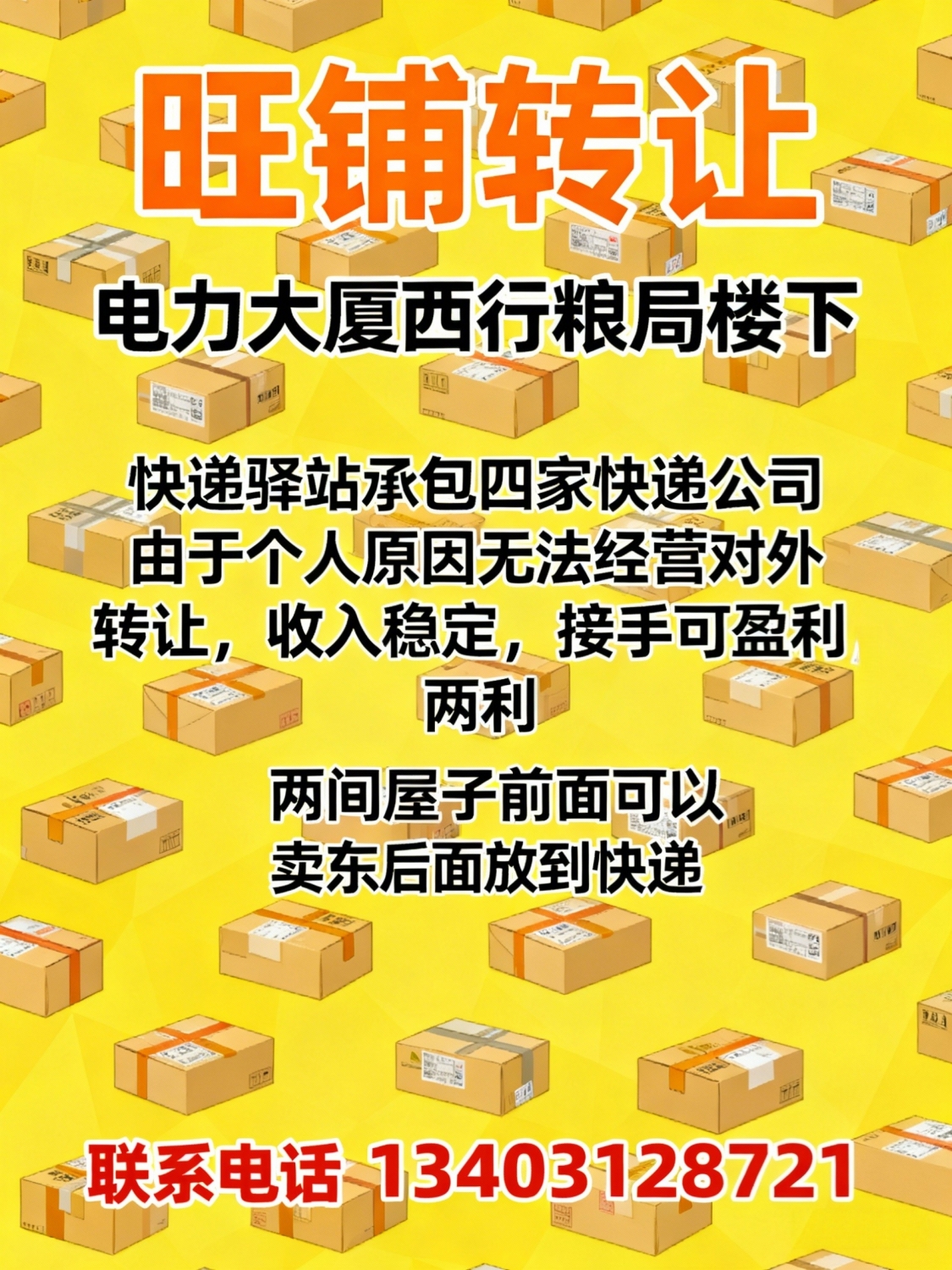旺铺转让 电力大厦西行粮局楼下快递驿站承包四家快递公司由于个人原因无法...