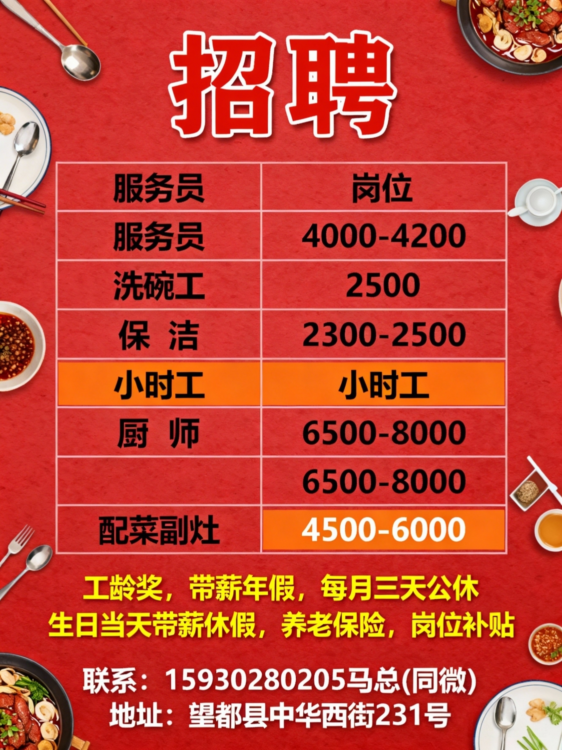 马师傅餐饮招聘服务员,4000-4200 洗碗工,2500 保洁,2300-2500 小时工,面议...