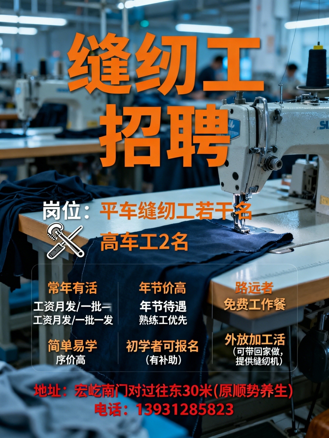 招聘平车缝纫工,若干名高车工2名薪资待遇:常年有活,工资月发或一批一发...