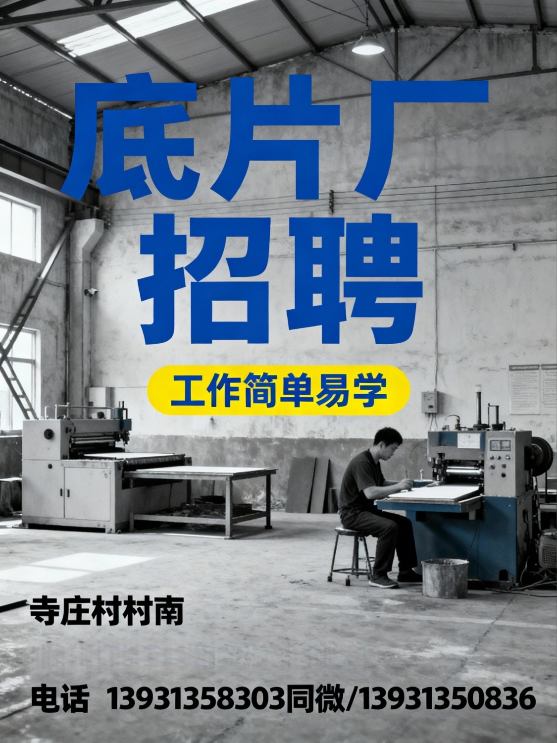 底片厂工作简单易学地址:寺庄村村南电话:*****8303同微*****0836...