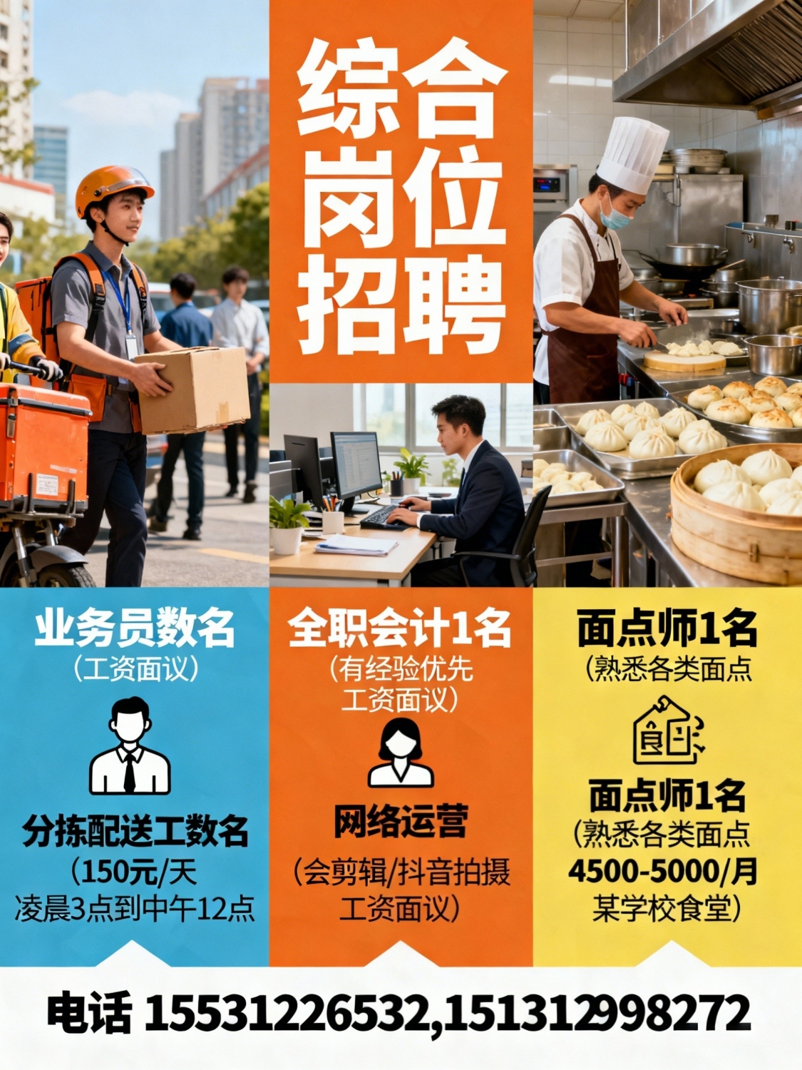 招聘业务员,数名,工资面议分拣配送工,数名,工资150元/天工作时间:凌晨...